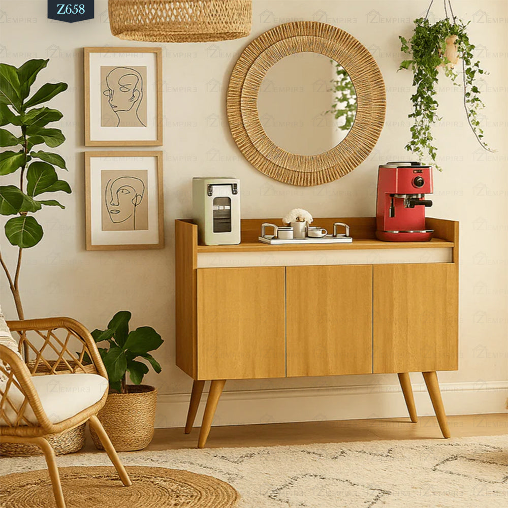 حول ركنك الصغير إلى واحة قهوة مفعمة بالأناقة مع كوفي كورنر مصنوع من خشب MDF عالي الجودة مدعومًا بأرجل من خشب الزان. تصميمه العصري يمنحك تنظيمًا مثاليًا لأدوات القهوة ويضيف لمسة ديكور أنيقة تمنح منزلك دفئًا وذوقًا راقيًا.